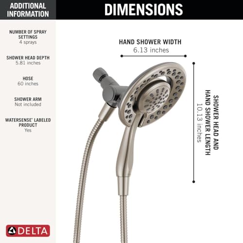 The Delta In2ition Two-in-One Shower features a detachable hand shower which can be used separately from or simultaneously with the shower head. This integrated dual-functionality gives you maximum flexibility without sacrificing warmth, as you can choose to have water streaming from the shower head only, the hand shower only or both the shower head and hand shower at once. While other products may gather unsightly mineral build-up over time, Delta soft rubber Touch-Clean spray holes allow any mineral residue to simply be wiped away for an instantly refreshed look with no need for soaking or the aid of chemical cleaners. The pause setting gives you ample space for shaving, lathering and other shower tasks, then easily restarts the water with the temperature where you left off. This spray setting helps you conserve water, so you can worry less about depleting your supply of hot water - and you help the environment too. Delta WaterSense labeled faucets, showers and toilets use at least 20% less water than the industry standard saving you money without compromising performance. Create a luxurious shower experience with a Delta hand shower/shower head combination. Whether you're remodeling your space or upgrading your existing setup, our hand shower/shower head combos will give you more flexibility and coverage in a variety of stunning styles.