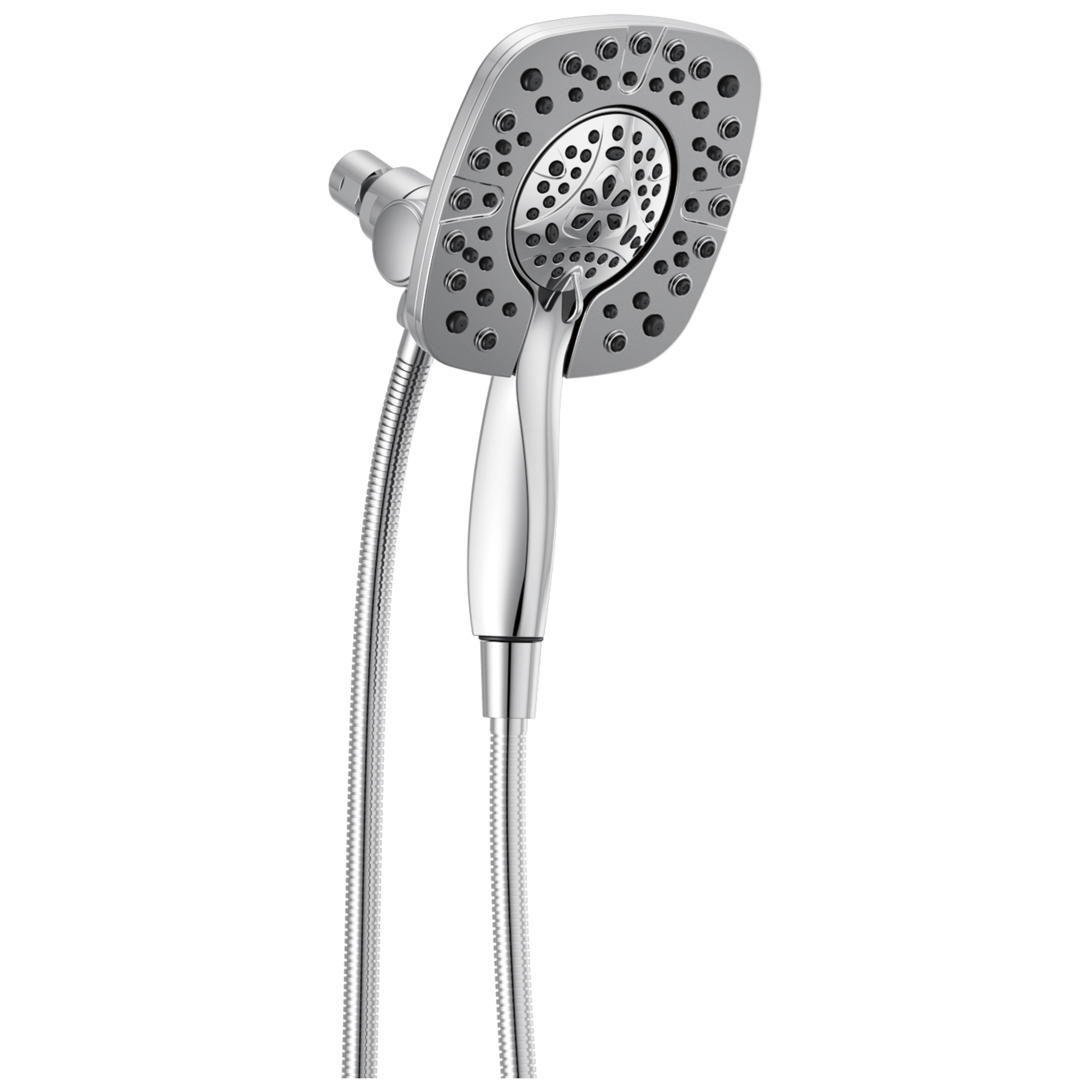 The Delta In2ition Two-in-One Shower features a detachable hand shower which can be used separately from or simultaneously with the shower head. This integrated dual-functionality gives you maximum flexibility without sacrificing warmth, as you can choose to have water streaming from the shower head only, the hand shower only or both the shower head and hand shower at once. While other products may gather unsightly mineral build-up over time, Delta soft rubber Touch-Clean spray holes allow any mineral residue to simply be wiped away for an instantly refreshed look with no need for soaking or the aid of chemical cleaners. The pause setting gives you ample space for shaving, lathering and other shower tasks, without worrying about overspray or water waste. This spray setting helps you conserve water, so you can worry less about depleting your supply of hot water - and you help the environment too. Delta WaterSense labeled faucets, showers and toilets use at least 20% less water than the industry standard saving you money without compromising performance.