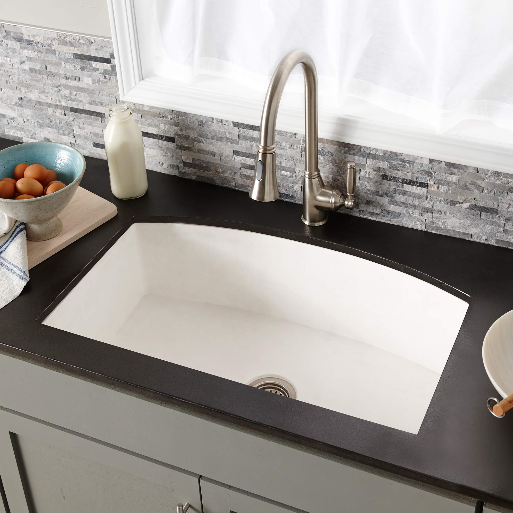 Make no mistake - the NativeStone Collection of kitchen sinks may be lighter weight than traditional concrete sinks (by 40%!), but they are heavy-duty when it comes to prep and cleanup.